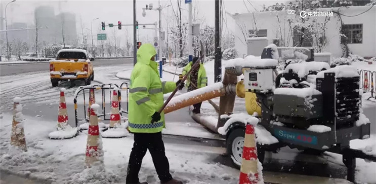 管網(wǎng)事業(yè)部肥西經(jīng)開項(xiàng)目部出動(dòng)綜合鏟雪車清除路面積雪并疏通重點(diǎn)區(qū)域管道