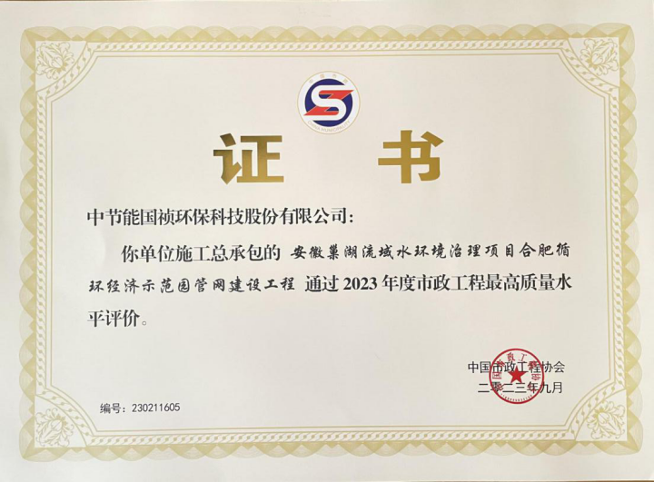 本次中國市政工程最高質(zhì)量水平評價的獲得,不僅是對獲獎工程項目質(zhì)量的認可,同時也對中節(jié)能國禎在工程質(zhì)量管理具有重要意義,并為公司在品牌宣傳和市場開拓方面做出了卓越貢獻。